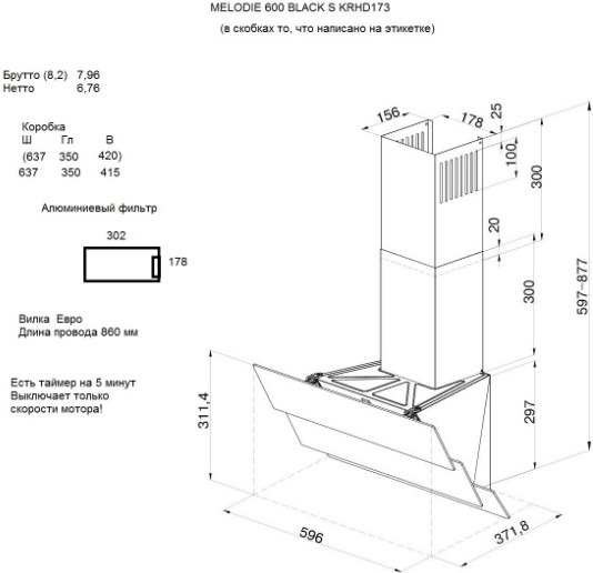 Высота, мм                597-877