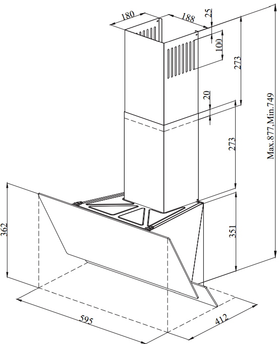 Высота, мм                877