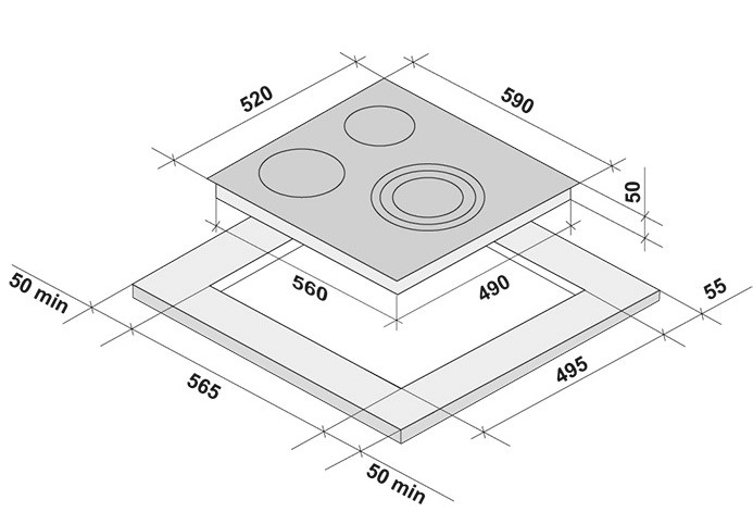Габаритные размеры (В*Ш*Г), мм                50х590х520