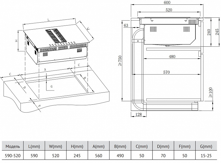 Габаритные размеры (В*Ш*Г), мм                245х590х520