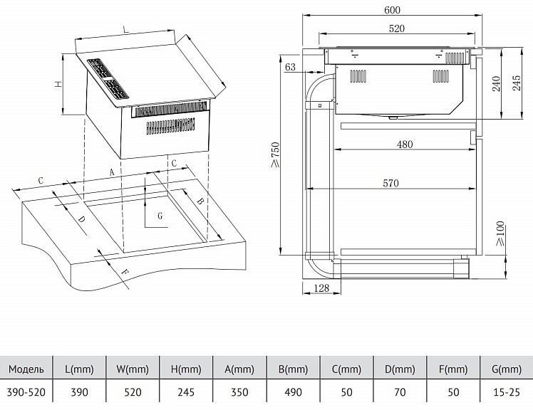 Габаритные размеры (В*Ш*Г), мм                245х390х520