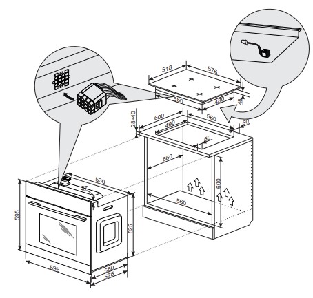 Размер ниши (В*Ш*Г), мм                595х560х560