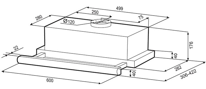 Габаритные размеры (В*Ш*Г), мм                176х600х306