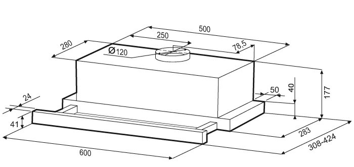 Габаритные размеры (В*Ш*Г), мм                177х600х308